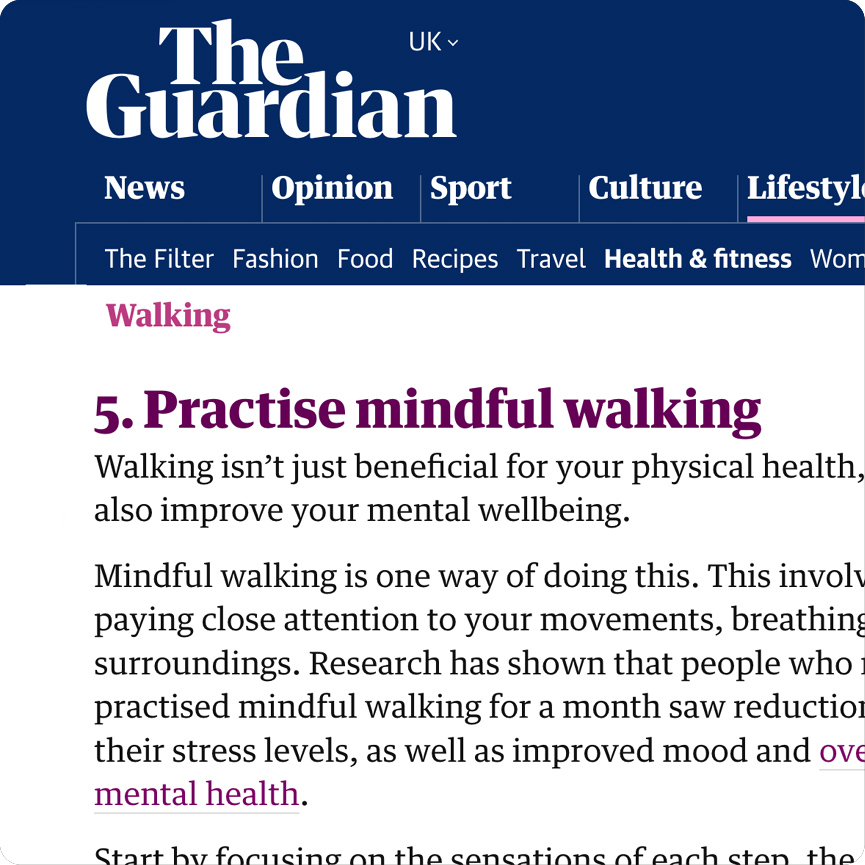 We were delighted to see mindful walking being highlighted in the Guardian.